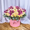 Коробка с амариллисами и розами