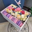 10 макарун с розами и хризантемой