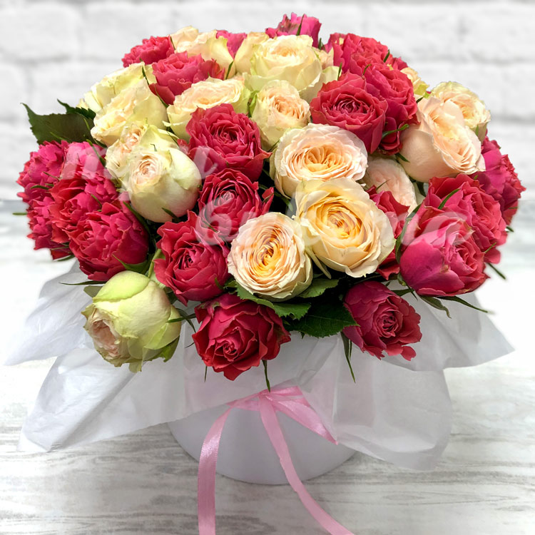 17 нежных кустовых роз в коробке