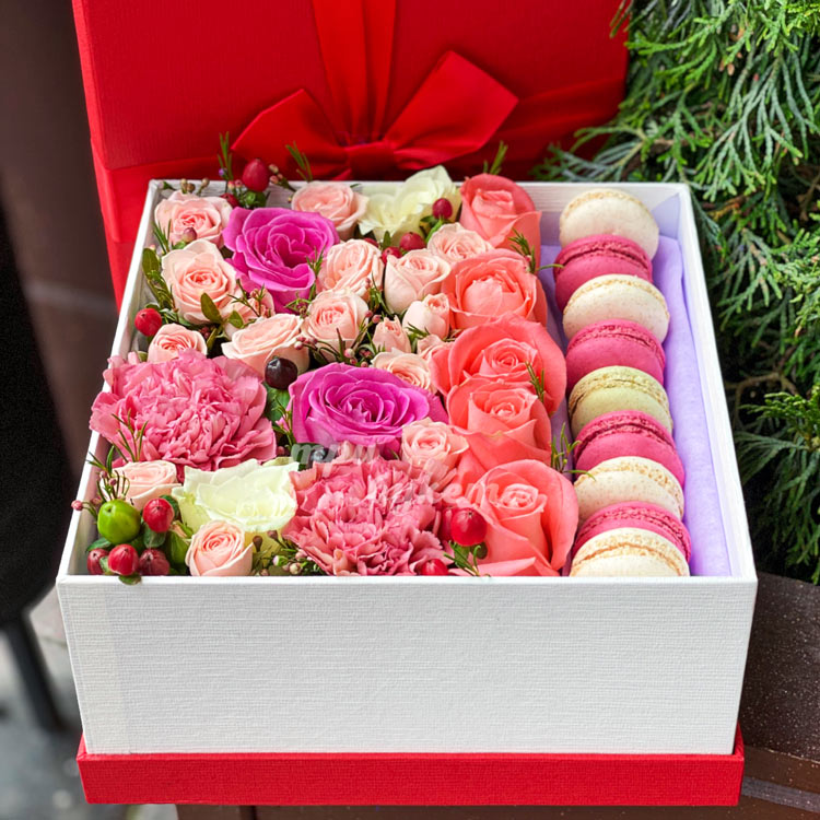 9 макарун с розами