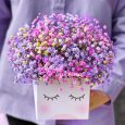 Белые розы и эустомы в коробке