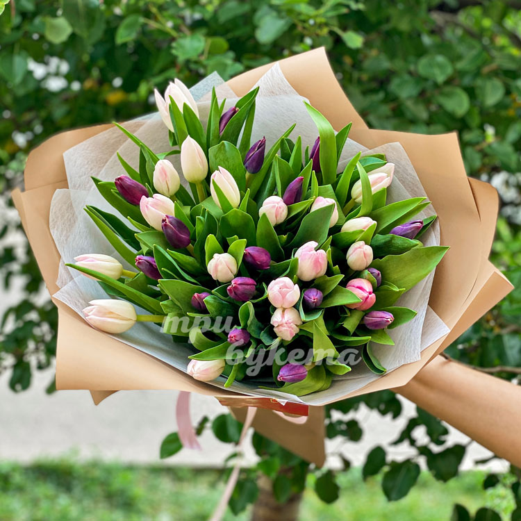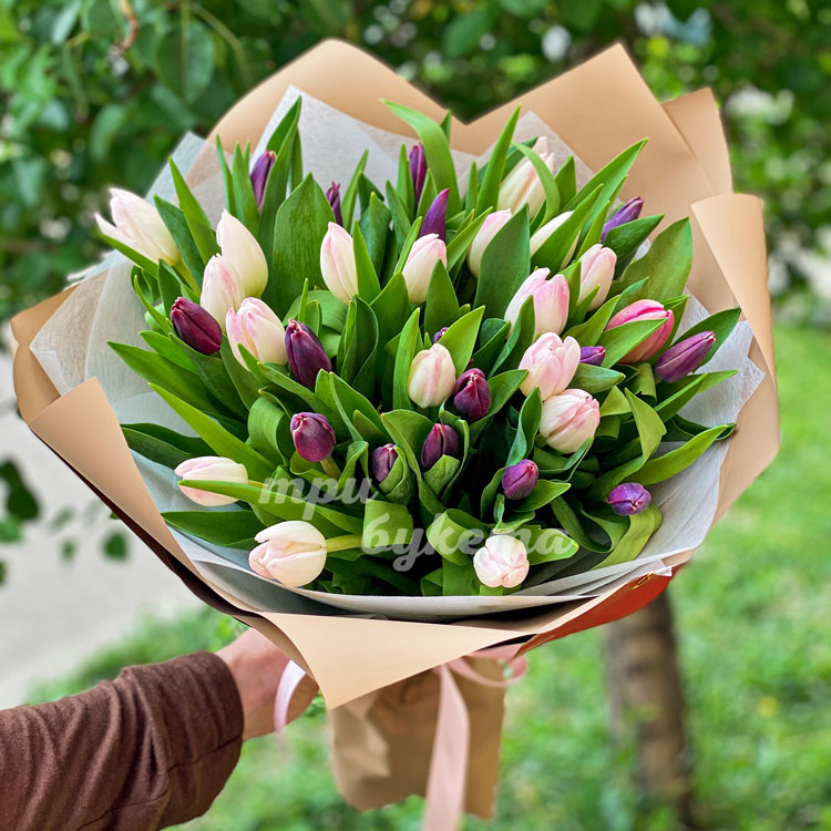 Букет фиолетовых и розовых тюльпанов