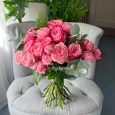 Букет из 15 розовых кустовых роз (60 см)