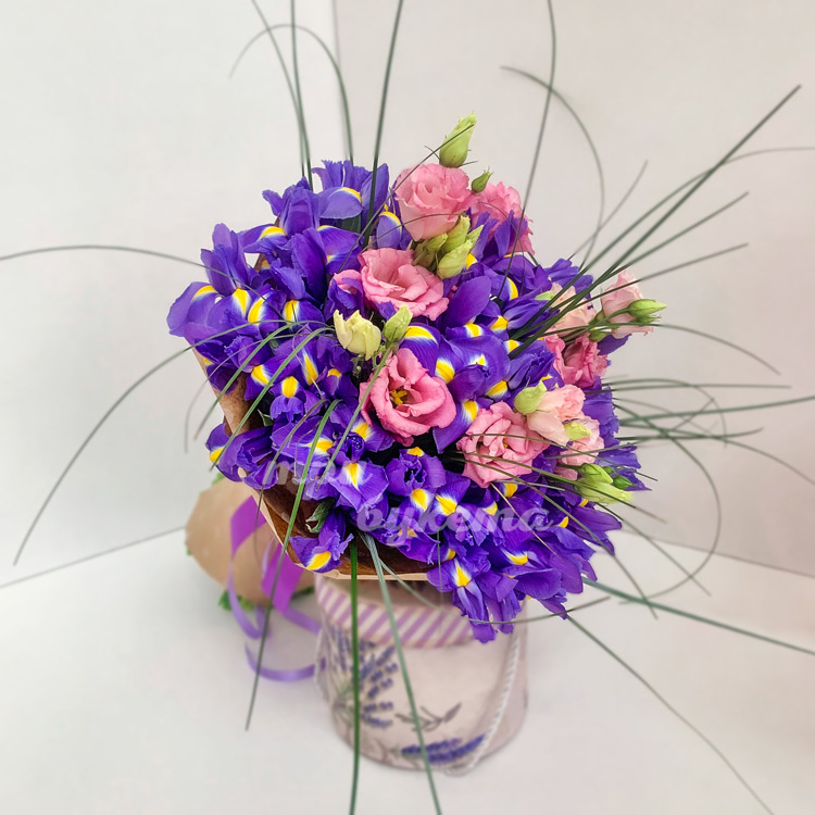 Букет из 25 ирисов и 5 эустом