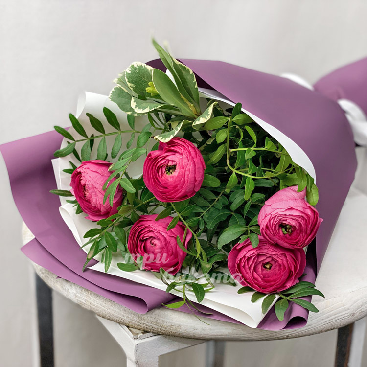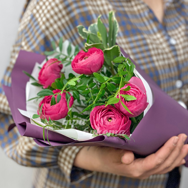 Букет из 5 розовых ранункулюсов