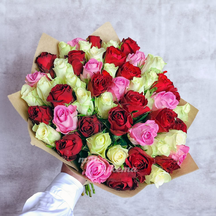 Букет из 51 цветной кенийской розы