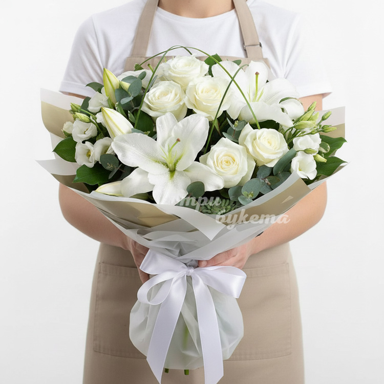 Букет из белых лилий и роз