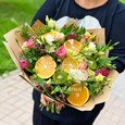 Букет из фруктов и хризантем