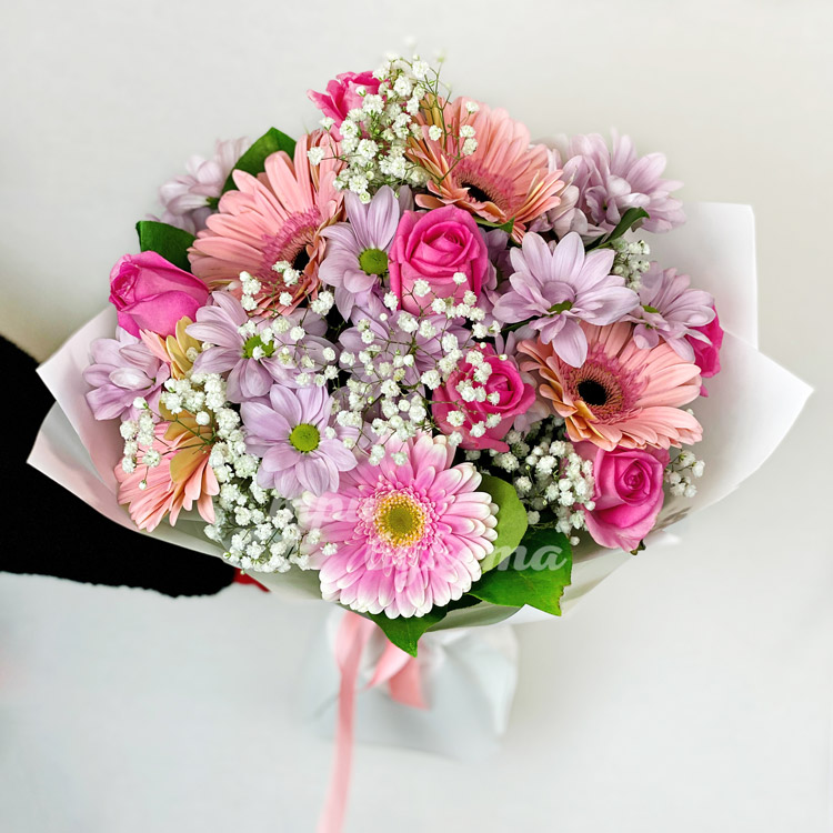 Букет из гербер и белой гипсофилы