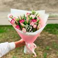 Букет из роз, эустом и тюльпанов