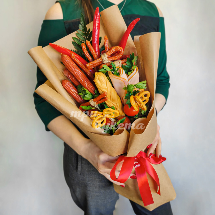 Букет из сыра и охотничьих колбасок