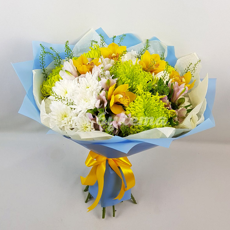 Букет из зеленых и белых хризантем