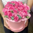 Фиолетовые розы в шляпной коробке