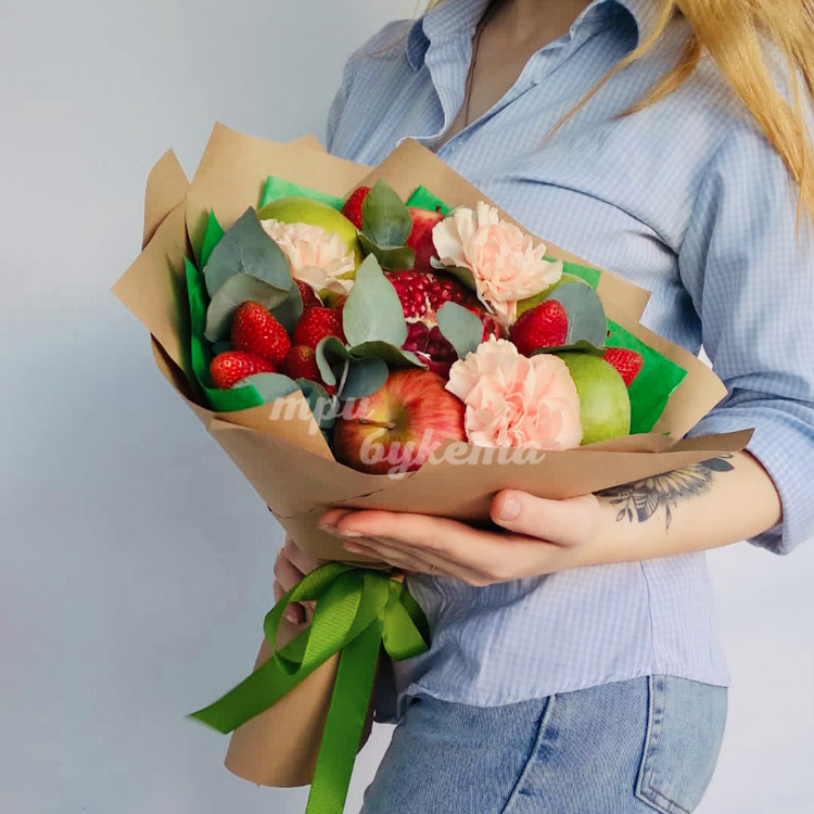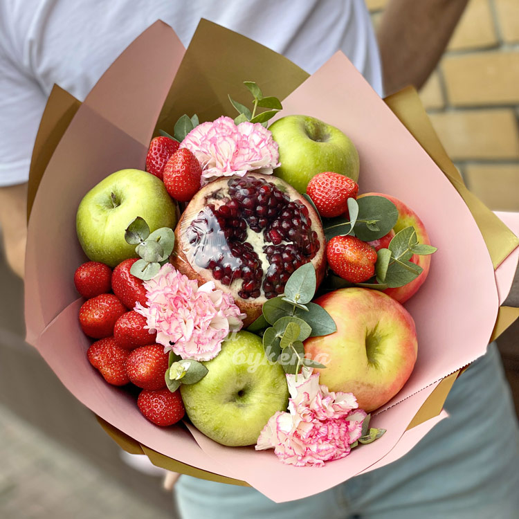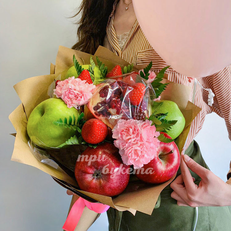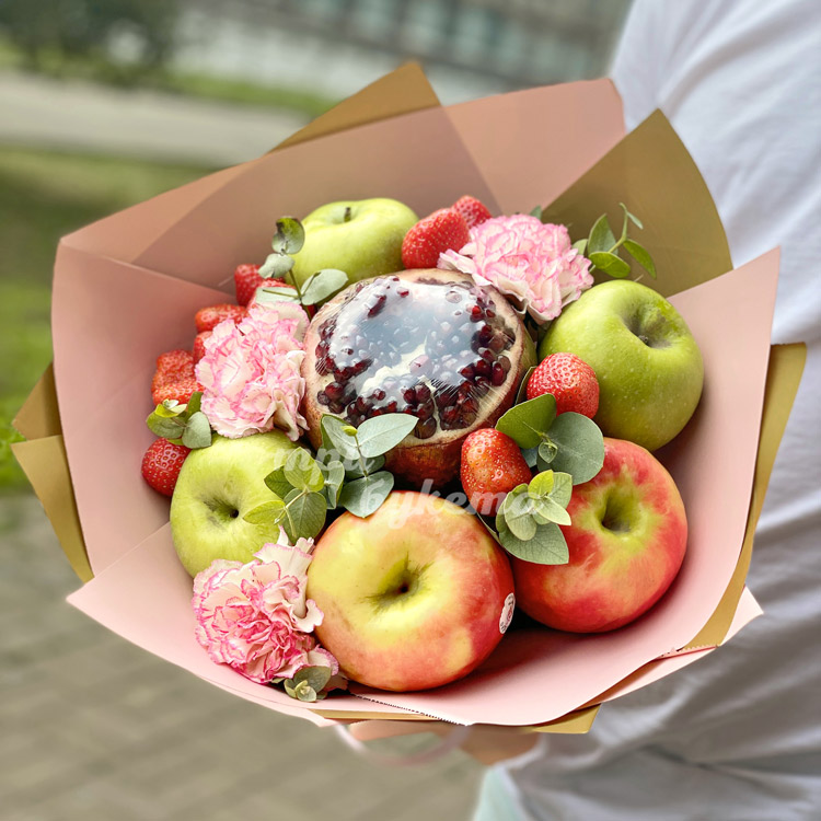 Фруктовый букет из яблок и гвоздик