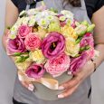 Гортензии, маттиолы и эустомы в коробке