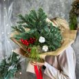 Хвойная композиция с бордовыми игрушками