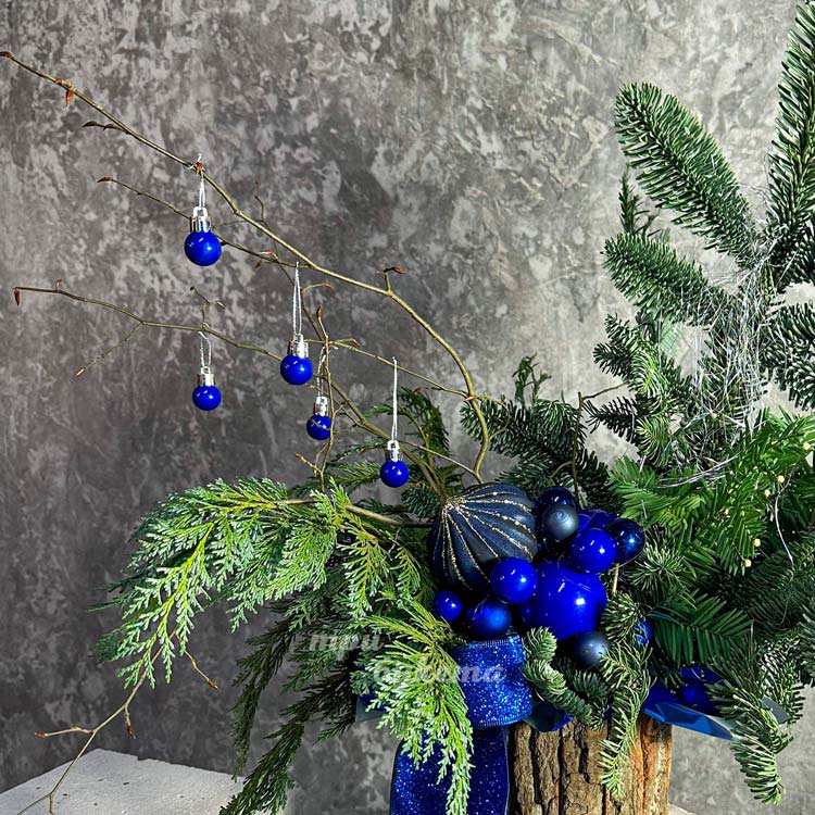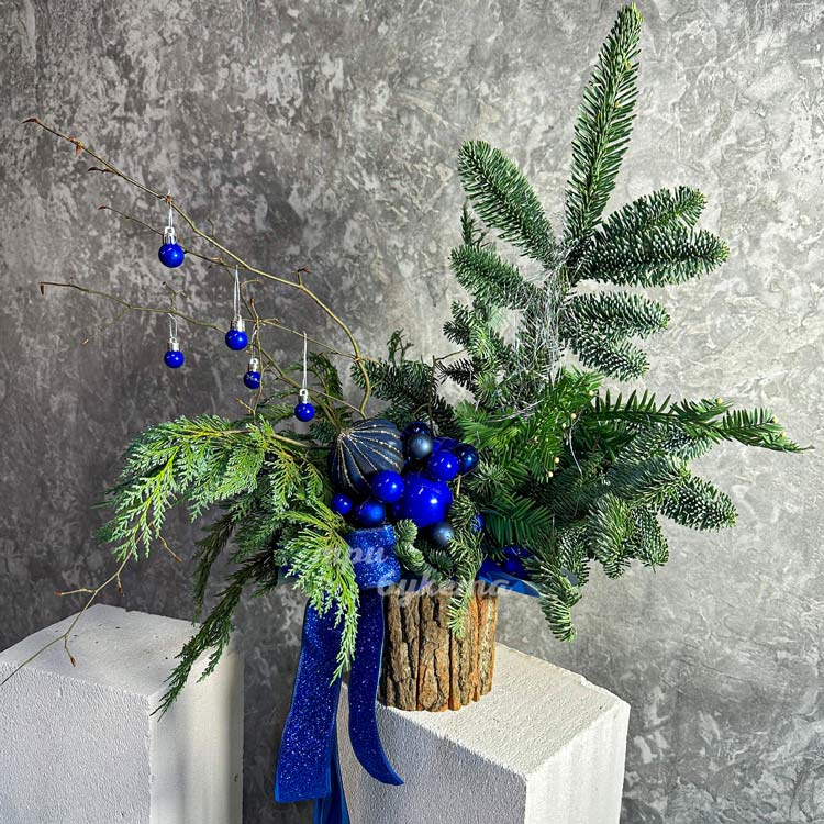 Кашпо с нобилисом и синими шариками