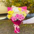 Коробка розовых французских роз и хризантем
