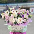 Корзина белых эустом и зеленых хризантем