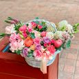 Корзина с розами и лимониумом