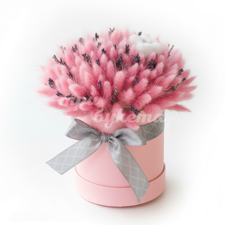 Лаванда и розовый лагурус в коробке