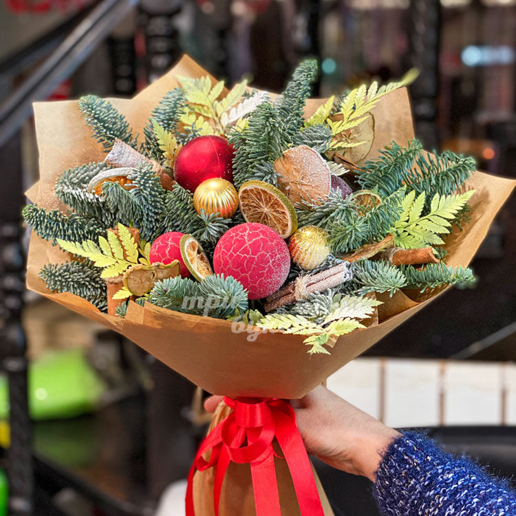 Новогодний букет из хвои в крафте