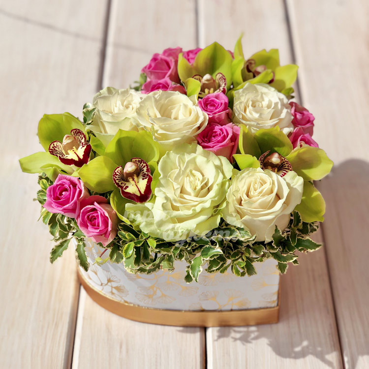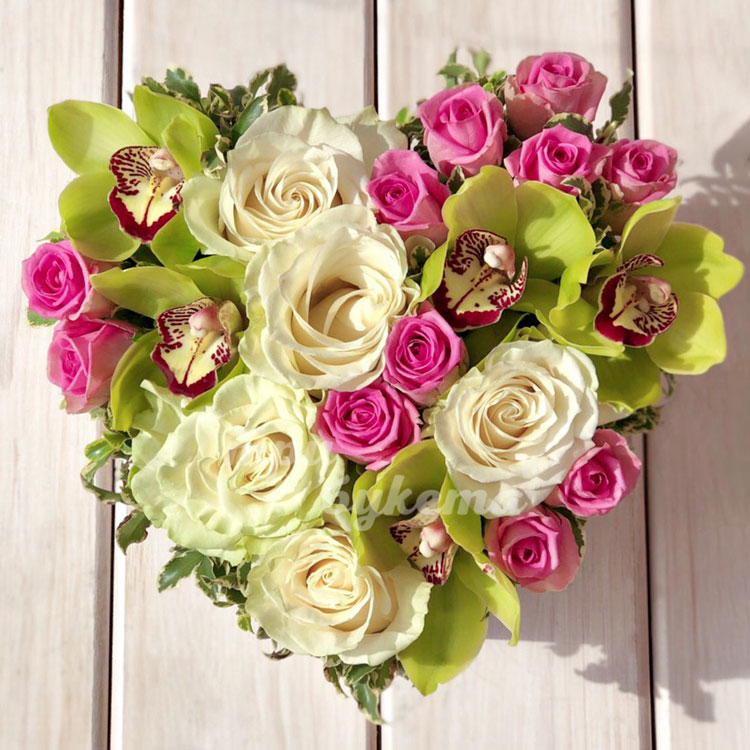 Сердце с розами и орхидеями