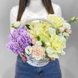 Тюльпаны со статицей в корзине