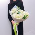 Зеленый букет кустовых роз и хризантем